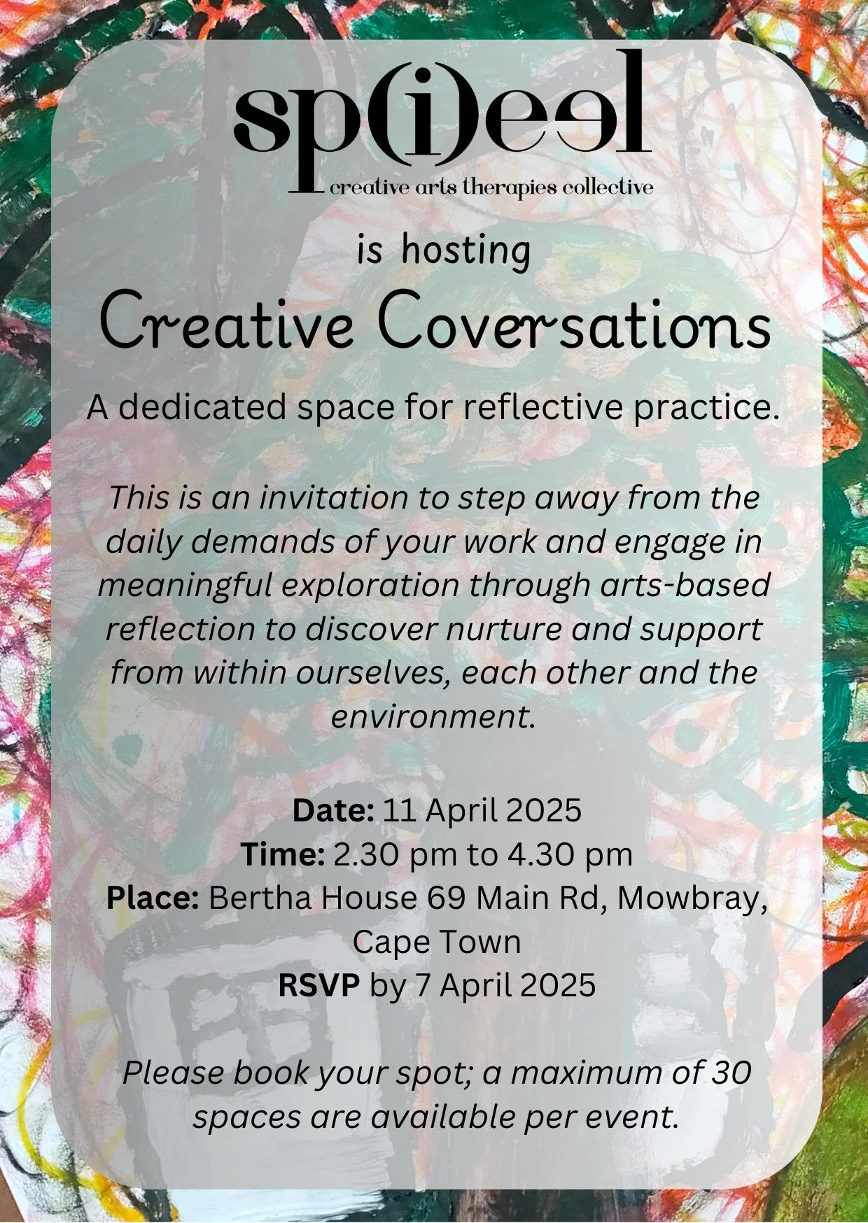 Please book your spot; a maximum of 30 spaces are available per event.